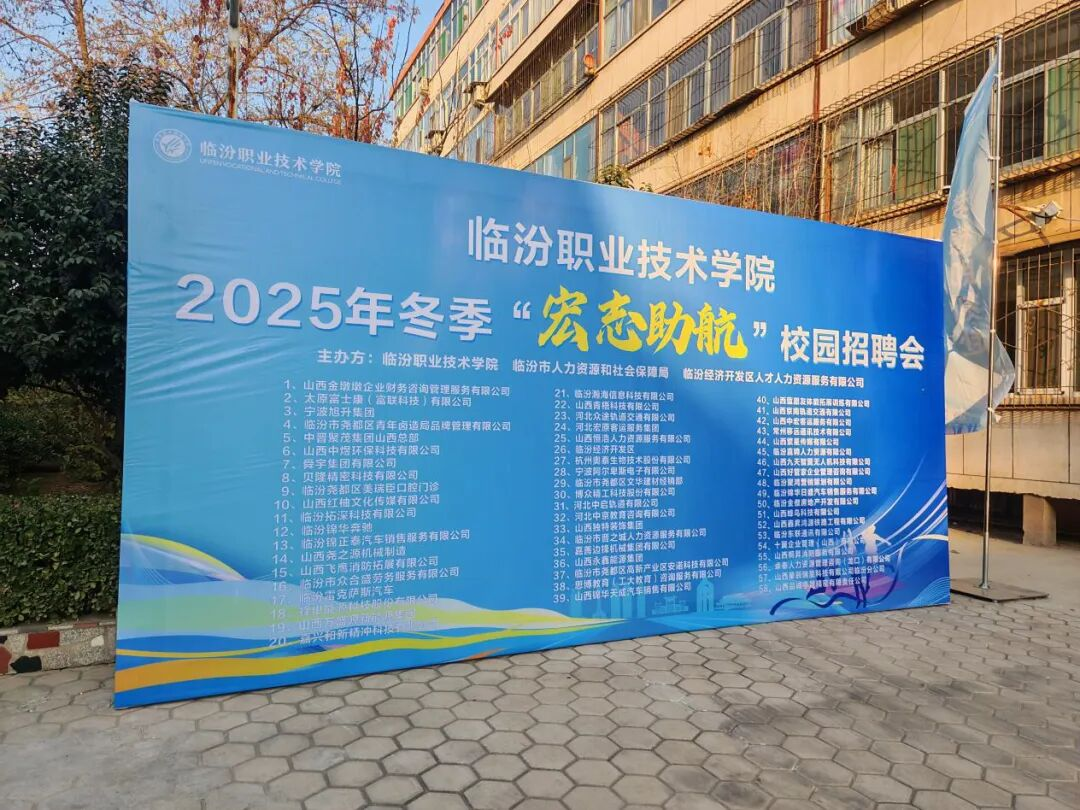 12月5日,临汾职业技术学院2025年冬季“宏志助航”校园招聘会在临汾市尧都区贡院街126号临汾职业技术学院三校区成功举办。本次招聘会由临汾市人力资源和社会保障局、临汾职业技术学院、临汾经济开发区人才人力资源服务有限公司联合主办,旨在抓住冬季校园招聘关键节点,精准搭建用人单位与学院2026届毕业生之间的双向选择桥梁,全力推动毕业生实现更充分、更高质量的就业。