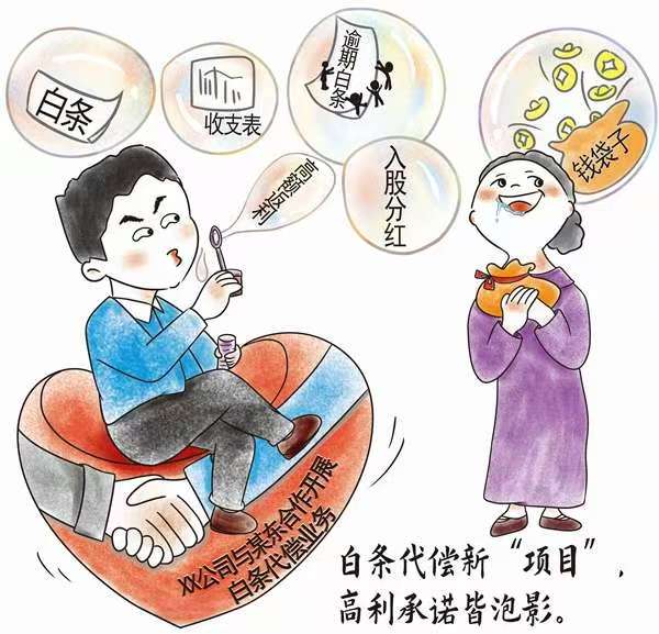 所谓“白条代偿类”非法集资骗局,是指一些不法分子单方面宣称与京东、苏宁、美团等一些电商平台“先消费、后付款”性质的信用支付产品“有合作”,主要从事协助资金紧张用户代偿的“业务”,并称该“业务”需要大量流动资金,以哄骗、引诱投资人作为“出资方”“入股”获取高利。此类“业务”多是新型骗局,场景逼真,迷惑性强,主要是给投资者“画饼”以骗取公众资金。面对此类宣传,大家一定要注意:一是合理消费,根据自身需求和收入水平,审慎使用各类互联网信用支付产品。二是审慎投资,对各类新型投资“机会”保持高度警惕,提高风险防范意识和识别能力,切勿轻信、轻易投资。